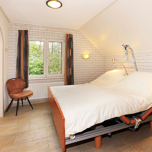 Auf einem riesigen Waldgrundstück verteilen sich 55 gemütliche Ferienhäuser, die Schlafplätze für 4 bis 12 Personen pro Unterkunft bieten. Die Waldhäuschen (niederländisch: bosvillas) gibt es in unterschiedlichen Komfortstufen ausgestattet. Sie verfügen aber immer über mindestens zwei Schlafzimmer. Etliche der größeren Waldvillen sind dem Standard des niederländischen Branchenverbandes für barrierefreien Urlaub („Nederlandse Branchevereniging Aangepaste Vakanties“, NBAV) entsprechend rollstuhlgerecht ausgelegt. Das bedeutet konkret: Im Erdgeschoss gibt es ein Schlafzimmer, ein Bad und eine geräumige Wohnküche mit Couchlandschaft und Fernseher (Spoileralarm: den braucht man hier wegen der aufregenden Natur um einen herum eh nicht).