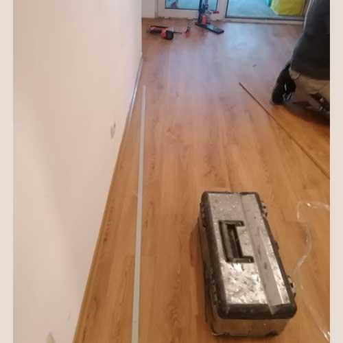 Leere Wohnung mit Renovierungsarbeiten am Bodenbelag